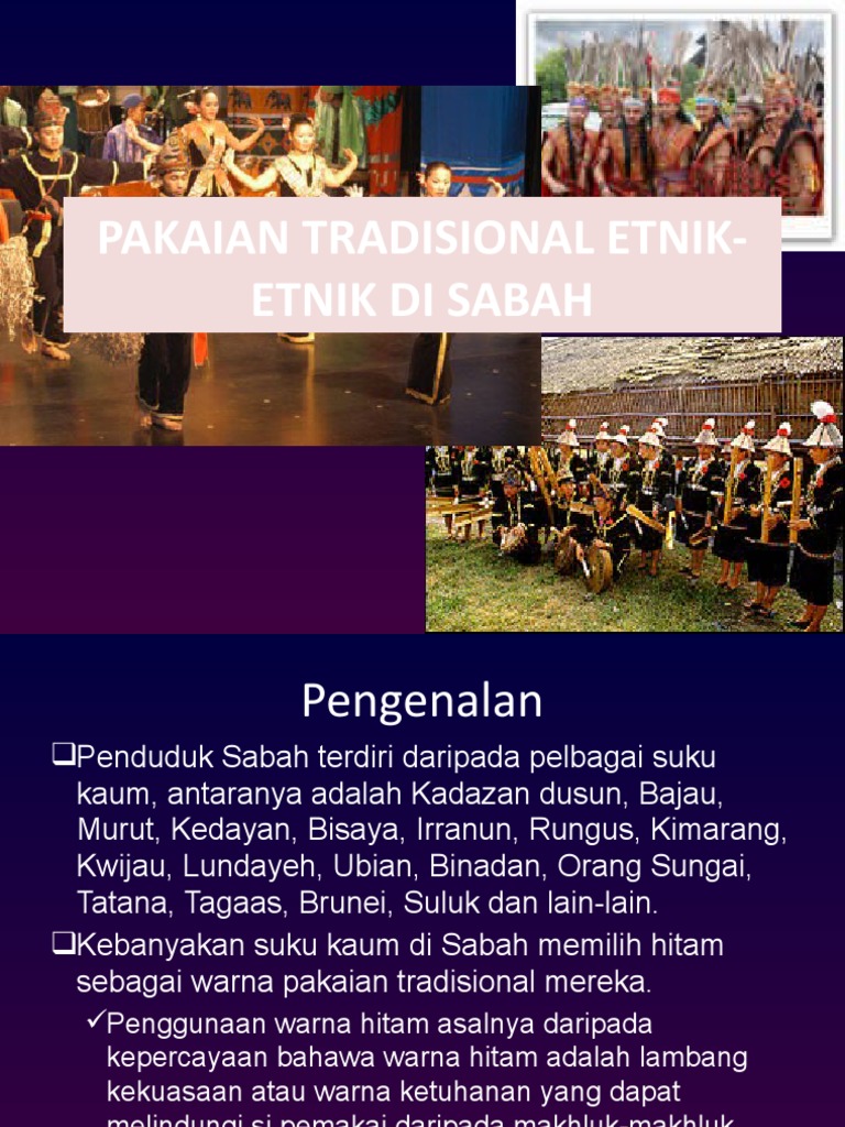 Up to 24 cash back KAUM DI SABAH - pakaian tradisional kaum di malaysia PAKAIAN ETNIK KADAZAN kadazanPakaian istiadat masyarakat Kadazan dari Penampang. Baju Tradisional Bajau Sumandak Bajau Bajau. Penggunaan kadazan dan dusun berbeza kata nama kaum tersebut.